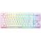 Typ přístroje Herní klávesnice Provedení klávesnice Drátová Formát Bez numeriky (TKL 80%) Rozložení klávesnice US Snímače kláves Optické Typ kláves Nízkoprofilové Připojení klávesnice 2,4 GHz + Bluetooth Rozhraní USB A Podsvícení klávesnice RGB Vhodné pro SMART TV Ne Typ baterií klávesnice Interní baterie