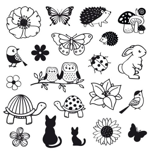 Razítka jsou ideální na výrobu malých dárků, přáníček, pozvánek, děti inspirují k volné tvorbě a tvoření. Sada obsahuje také razítkovací polštářek černé barvy., VHODNÉ PRO DĚTI OD 6 LET.