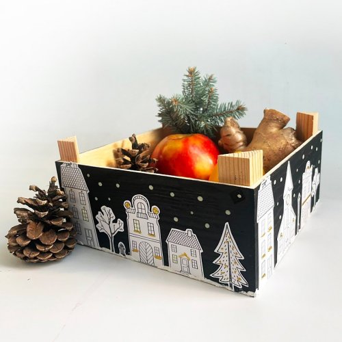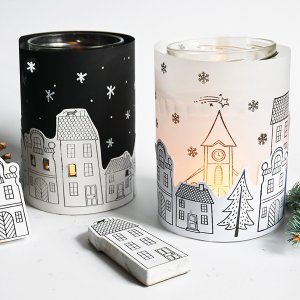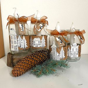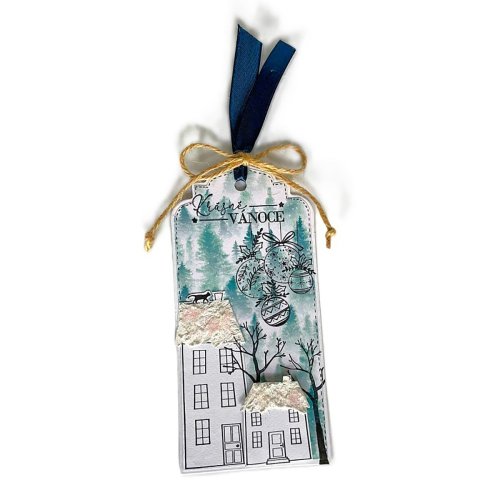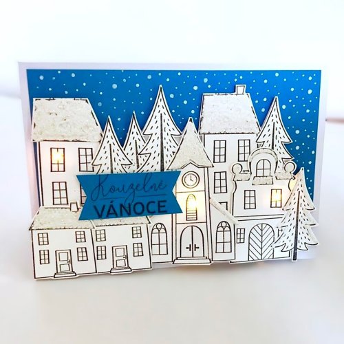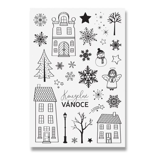 Originální gumová razítka s motivy domečků a sněhových vloček.