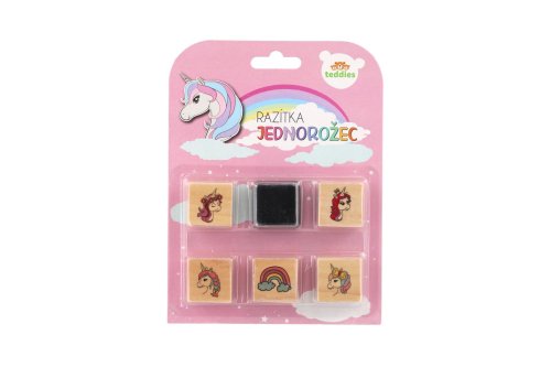 Děti si mohou tisknout obrázky s motivem jednorožců, vybarvit je a vytvářet si příběhy. Balení obsahuje 5 ks dřevěných razítek a podušku Rozměr razítka: 3 x 3 cm Vhodné od 3 let