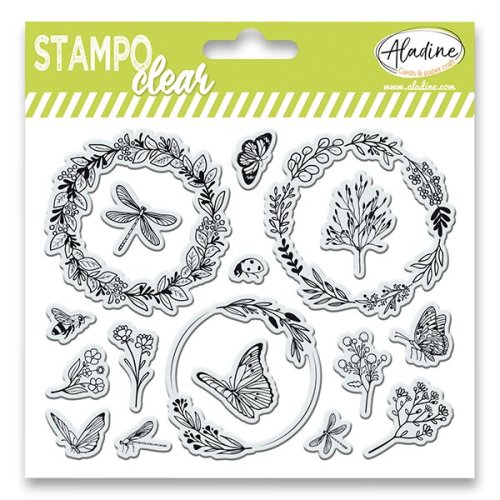 Sada obsahuje:, * 17 razítek různé velikosti., Velikost archu 15,5 x 16 cm., POUŽITÍ:, Razítko sejmeme z podložky a položíme na blok. Tiskneme jako s klasickým razítkem. Po práci umyjeme vlažnou vodou. Můžeme používat opakovaně. Razítka jsou stále přilnavá, bez, použití lepidla., TIP: Kreativní razítka Aladine jsou výbornými pomocníky nejen na papír, ale i pro dekorace na textil, dřevo, polymer či modelovací hmotu. Prohlédněte si je >>