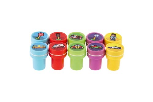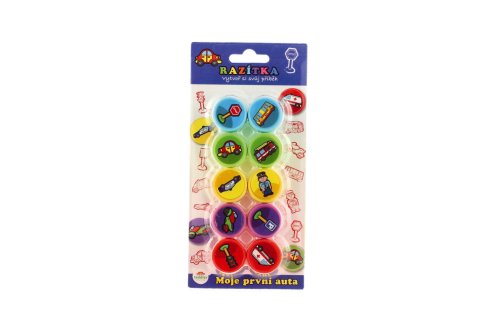 Dětská razítka potěší každé malé dítě. Děti mohou tisknout s razítky jednotlivé obrázky, dokreslit si je a poskládat z nich příběh. Balení obsahuje 10 ks razítek. Rozměr razítka: 2,5 x 4 cm Rozměr karty: 9 x 19 x 4 cm Vhodné od 3 let