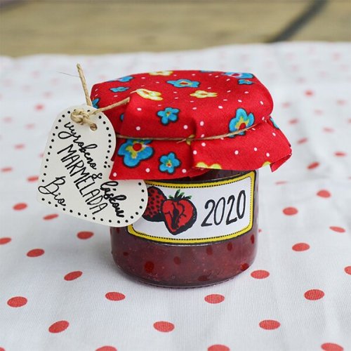 Sada Marmeláda obsahu 35 nápaditých razítek určených ke kreativnímu označování domácích zavařenin a gastronomických specialit.