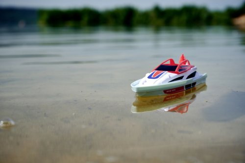 Loď na dálkové ovládání, 2 kanály. Vodotěsný ovladač. Zvýšení rychlosti. Max. rychlost 2 km/h. Frekvence 2.4 GHz. Měřítko 1:48. Délka 34 cm.