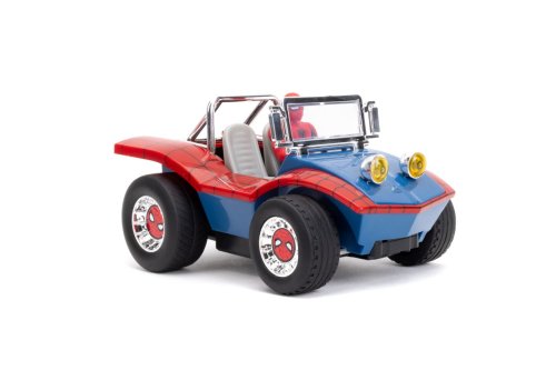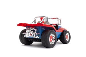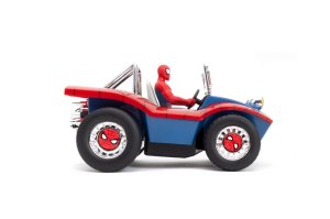 RC Marvel Spiderman Buggy v měřítku 1:24. 2 kanál, 2,4 GHz, turbo, USB nabíjení. Rychlost 9 km/h. Součástí je neodnímatelná figurka Spidermana. Délka 19 cm.