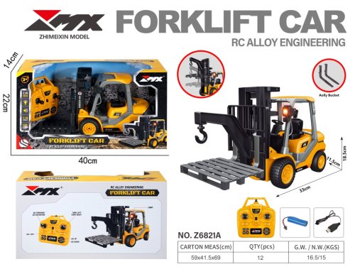 RC vysokozdvižný vozík v měřítku 1:18 představuje detailně propracovaný model s kovovými prvky, který je navržen tak, aby co nejvěrněji napodoboval skutečný vysokozdvižný vozík. Vozík je vyveden v klasické žluté barvě s černými doplňky, což odpovídá průmyslovému designu reálných strojů. Vidlice je robustní a pohyblivá, umožňuje zvedání a spouštění nákladu, a navíc je vybavena hákem pro připevnění různých nástrojů či břemen. Na modelu jsou také realistické detaily jako ochranná mřížka za vidlicí a osvětlení, které efektivně doplňuje celkový vzhled a zvyšuje jeho věrohodnost.