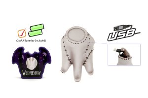 Animovaná lezoucí ruka - Věc na dálkové ovládání z filmu Wednesday. Pohyb vpřed, vzad se točí doleva. Frekvence 2,4 GHz. Dobíjení prostřednictvím USB. Velikost 18 cm.