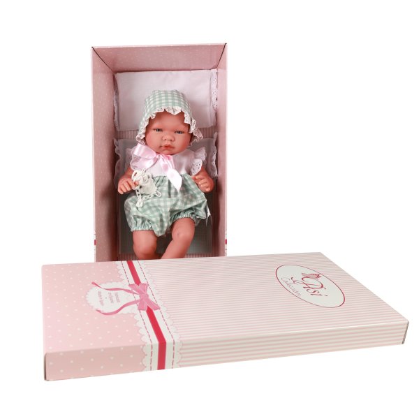 Krásné realistické miminko chlapeček Pablo je vyrobeno firmou Asivil ve Španělsku. Miminko je 43 cm dlouhé, má tvrdé - vinylové tělíčko, propracované do všech detailů, včetně pohlaví. Má nemrkací akrylové oči a nalepené řasy. Pablo nemá vlásky, má nemrkací akrylové oči modré barvy a nalepené řasy. Pablo je oblečen do zeleno-bílého overálku bez rukávů a s krátkými nohavicemi, na hlavě má čepičku na zavazování. Obleček je zdobený bílou krajkou. Chlapeček leží na polštářku a peřince, má dudlík na řetízku, který je možné vložit do pusinky a drží tam. Asivil je rodinný podnik, který se více jak 50 let pyšní výrobou vysoce kvalitních panenek, známých pod značkou ASI. Panenky jsou ještě krásnější tím, že se firma zavázala ke 100% španělské řemeslné výrobě, splňující všechny evropské výrobní normy. Jejich produkty kombinují tradici i moderní trendy. Panenka je balena v dárkové krabici a splňuje bezpečnostní a zdravotní normy (CE). Doporučeno pro děti od 3 let.
