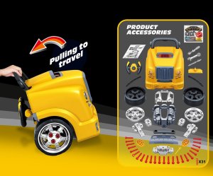 Hračka obsahuje světelné a zvukové efekty, které dodávají hernímu zážitku vzrušení a realismus. Díky sadě nářadí a pohyblivým částem mohou děti opravovat auta, měnit pneumatiky, utahovat šrouby a učit se základy mechaniky prostřednictvím akce. Rozvíjí manuální dovednosti a logické myšlení a podporuje učení hrou.