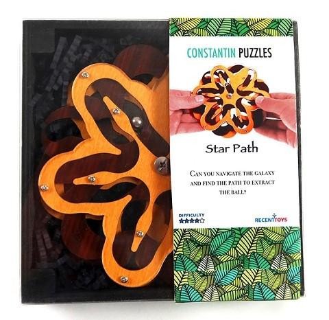 Navigujte kuličku po celé galaxii! Star Path neboli Hvězdná stezka je nejnovějším výtvorem Jeana Clauda Constantina. Tento úžasný dřevěný hlavolam se skládá ze 3 různých vrstev, které se pohybují samostatně. Cílem hry je vytáhnout kuličku, která přitom musí projít celým vesmírem. Dokážete se orientovat v galaxii, nechat kuličku pohybovat po hvězdné stezce a najít cestu k získání kuličky? Doporučený věk: 14+