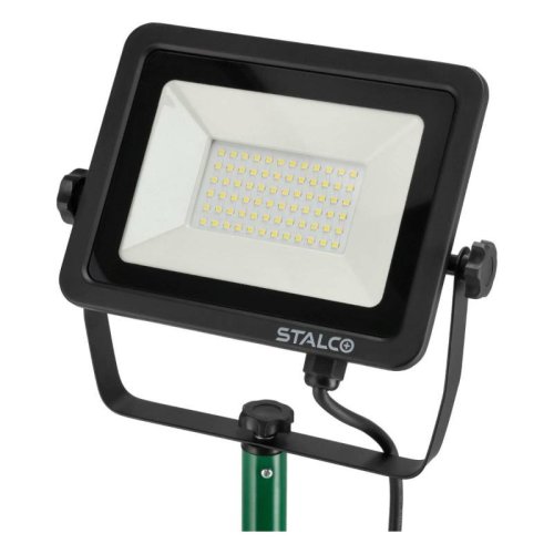 Výkonný LED reflektor určený pro práci na stavbách, v dílnách, garážích i venkovních prostorách. Poskytuje silné a rovnoměrné osvětlení s výkonem 4500 lm a neutrální barvou světla 5000 K, ideální pro přesnou práci. Díky stativu s nastavitelnou výškou 60–180 cm a otočné konstrukci snadno nasměrujete světlo tam, kde ho potřebujete. Krytí IP65 zajišťuje odolnost proti prachu a vodě, takže je vhodný i do náročných podmínek.