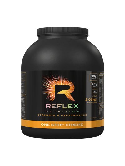 One Stop XTREME je nejsilnější hardcore verzí společnosti Reflex Nutrition, která byla vyvinuta za posledních 15 let! Koncepce celého produktu je určena pro všechny sportovce, jejichž cílem je nárůst svalové hmoty. Základ One Stop XTREME tvoří patentovaná směs bílkovin s postupným uvolňováním, která je jako VŽDY v každé výrobní šarži produktu testována na garantovaný obsah použitých bílkovin a aminokyselin.55 g speciální směsi bílkovin s postupným uvolňováním Pravděpodobně nejsofistikovanější směs bílkovin a aminokyselin, která byla doposud vyvinuta. Základ tvoří kombinace špičkové syrovátkové bílkoviny, nativní syrovátkové bílkoviny a micelárního kaseinu. Rychlé zdroje aminokyselin jsou vůči zdrojům s postupným uvolňováním v optimalizovaném poměru 3,35:1, tedy přesně tak jak je to pro svalová vlákna nejvhodnější. Pouze špičková kvalita: One Stop XTREME neobsahuje neplnohodnotné zdroje bílkovin jako je sojový koncentrát, kolagen (bílkovina hovězího původu), kaseinát vápenatý, sušený vaječný bílek a další. 3.000 mTROL mg L-Leucinu 10.320 mg BCAA v každé dávceDíky použití bílkovin s vysokým obsahem BCAA (zdroj fermentace), obsahuje každá dávka One Stop XTREME 10.320 mg BCAA v rámci použitých bílkovin. Pokud přičteme aditivum mTOR L-Leucinu, který je také jednou z BCAA aminokyselin, dostaneme neuvěřitelný součet 13.320 mg BCAA!5.000 mg patentovaného Creapure® kreatin monohydrátuPrověřená, funkční dávka Beta-AlaninuDenní dávka One Stop XTREME obsahuje 1.800 mg beta-alaninu.Glutaminové peptidyPlnohodnotné dávky vitamínůSe 100% RHP všech důležitých vitamínů (pozn. pro 2 dávky denně) je One Stop XTREME naprostým unikátem mezi formulemi all-in-one.Bisglycinát zinečnatý, bisglycinát hořečnatý a oves Avena SativaSoučasná legislativní opatření EU nám neumožňují popisovat výhody této kombinace, nicméně vlastní zkušenost Vám dá jednoznačnou odpověď..Obsahuje stabilní probiotické kultury a trávící enzymy Probiotické kultury a komplex enzymů Digezyme® napomáhá při trávení a vstřebávání živin. Další složkou je BioPerine®, který zvyšuje využitelnost jednotlivých ergogenů.REFLEX NUTRITION Vás bude plně podporovat po celou dobu Vaší cestyPokud chcete využít maximálně potenciál One Stop XTREME, je důležité se ujistit, že Vaše tréninkové návyky jsou nastaveny správně. Níže je uvedeno několik kroků, které je třeba dodržovat. V případě potřeby můžete také kontaktovat náš tým odborných poradců. Doporučené dávkování: