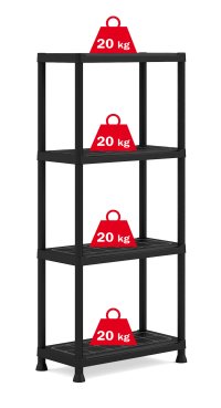 Regál obsahuje celkem 4 police s velkou nosností, které unesou i výrazně těžší předměty všeho druhu. Lze ho tedy využít pro skladování dílenského nářadí či zahradnických potřeb, kdy přijde vhod pro uložení náčiní, které by se jinam nevešlo. Regál rovněž můžete přimontovat na zeď pro větší stabilitu. Díky svému provedení v univerzální černé barvě vhodně doplní každý prostor.