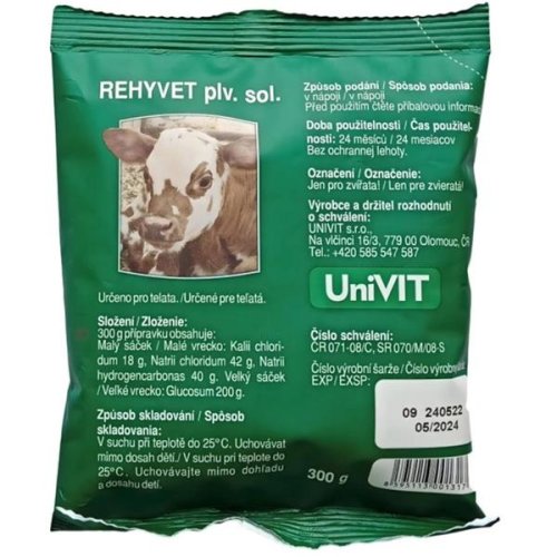 Perorální rehydratace je jedním z vhodných způsobů léčby průjmových onemocnění telat, zejména ve velkochovech. Po aplikaci připraveného roztoku dochází k rychlému vyrovnání ztráty vody, chloridu sodného a draselného a prostřednictvím kyselého uhličitanu sodného i ke kompenzaci acidózy. Glukóza jako energetický zdroj je nezbytný i pro resorpci elektrolytů a vody z tenkého střeva.