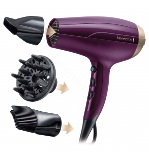 Fén na vlasy Remington D5219 se skvěle hodí pro náročné uživatele, a to díky bohatému příslušenství a vysokému výkonu 2 300 W. Motor vysoušeče dokáže vyvinout sílu proudícího vzduchu neuvěřitelných 85 km/h. V balení naleznete tři nástavce - koncentrátor, difuzér a nástavec “Root Boost” pro objem od kořínků. Díky ergonomické rukojeti se vysoušeč vlasů Remington D519 dobře drží v ruce a pohodlně se s ním manipuluje.