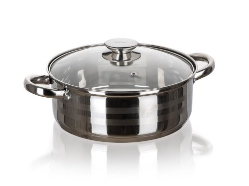 Rendlík 28 cm, se skleněnou poklicí, 6,6 l, nerez, LIVING. objem: 6,6 l průměr: 28 cm výška: 11 cm materiál: nerez tloušťka stěny: 0,5 cm tloušťka dna: 2,5 cm materiál držadel: nerez materiál poklice: …