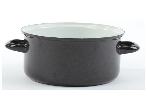 objem: 2,8 l průměr: 20 cm výška: 10 cm síla plechu: 1-1,2 mm vnitřní barva: bílý granit vnější barva: černá s bílou pihou