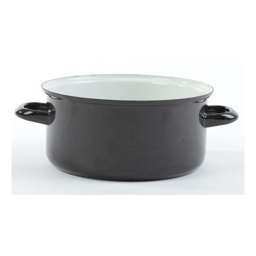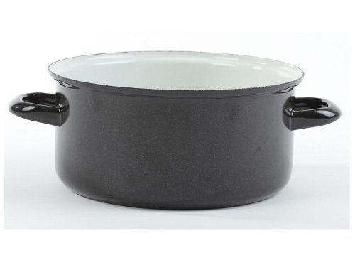objem: 8 l průměr: 28 cm výška: 15,5 cm síla plechu: 1-1,2 mm vnitřní barva: bílý granit vnější barva: černá s bílou pihou