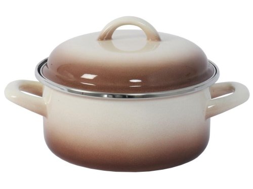 Nádobí v designu Capuccino je stálicí na českém trhu a jistě potěší milovníky klasiky, kteří upřednostňují decentní vzhled nádobí před nádobí s výrazným dekorováním. Na venkovní straně nádobí Capuccino je použita líbivá kombinace béžového a hnědého smaltu s postupným přechodem mezi oběmi zmíněnými barvami. Uvnitř tohoto nádobí je nanesen vysoce odolný hnědý smalt, jež je mnohem odolnější proti zašpinění, než povrchy světlejších barev.