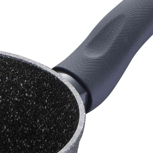 •16x7,5 cm rendlík bez pokličky. •Kapacita: 1,6L. •Materiál: kovaný hliník. •Nepřilnavý hrnec: má mramorovaný nepřilnavý povrch. •Vhodné pro všechny typy sporáků včetně indukce. • Ergonomická rukojeť s měkkým povrchem a texturou hadí kůže. • Šedé provedení s bílými puntíky. • Bez obsahu PFOA. •Péče: Pro prodloužení životnosti výrobku se doporučuje ruční mytí.Pánev bez pokličky patřící do kolekce Orion značky Bergner. Jeho velikost, 16 cm v průměru a 7,5 cm na výšku, a jeho objem 1,6 l z něj dělají ideální pro přípravu jakéhokoli typu individuálních receptů nebo pro dvě osoby a překvapí vaši rodinu a přátele širokou nabídkou jídel. Hrnec je vyroben z kovaného hliníku, vysoce kvalitního a odolného materiálu, který umožňuje rychlé a rovnoměrné rozložení tepla, zabraňuje vzniku horkých míst a tím šetří velké množství energie. Tento materiál navíc poskytuje kusu velmi dobré vlastnosti lehkosti, udržení tepla při vysokých teplotách a odolnosti vůči rizikům koroze, nárazům a poškrábání. Hrnec má nepřilnavou vnitřní vrstvu Marble+, která zajišťuje rovnoměrnější efekt uvolňování potravin, zabraňuje přilnutí jídla k povrchu a usnadňuje čištění. Tento povlak je navíc extrémně odolný a odolný proti poškrábání. Hrnec má bodovou indukční základnu, díky které je vhodný pro všechny typy sporáků: sklokeramické, elektrické, halogenové, plynové a indukční. Design hrnce v šedé barvě s bílými puntíky se skvěle hodí do každého typu kuchyně. Navíc má ergonomickou rukojeť s texturou hadí kůže a povrchovou úpravou soft touch, která pozvedne váš způsob vaření a zároveň vás ochrání před popálením při manipulaci s kusem. Díky všem těmto vlastnostem je ideální pro všechny kuchaře, od začátečníků až po ty nejzkušenější. Pro prodloužení životnosti výrobku se doporučuje ruční mytí.