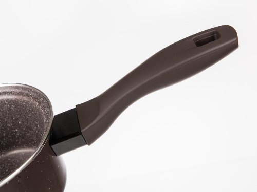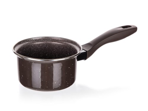 Smaltovaný rendlík má 2vrstvý vnitřní nepřilnavý povrch a vnější smaltovaný povrch Dark Brown. Rukojeť je vyrobena z bakelitu se soft touch povrchovou úpravou a dno výrobku je opatřeno piktogramy k použití.