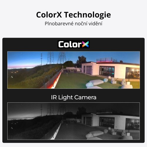 Díky technologii ColorX zprostředkuje plnobarevné noční vidění i v náročných podmínkách, kde pouhé přisvícení nestačí. Obraz tak obsahuje všechny detaily, které vám spolu s inteligentní detekcí pohybu umožní rozpoznat osoby, vozidla, nebo zvířata – a to v šeru.