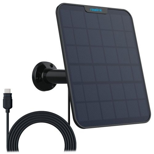 Solární panel se kterým získáte nepřetržité a ekologické dobíjení bateriových kamer Reolink. Připojován je pomocí 4m USB-C kabelu.