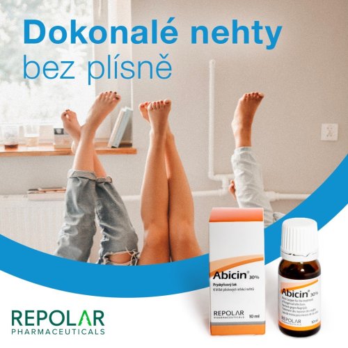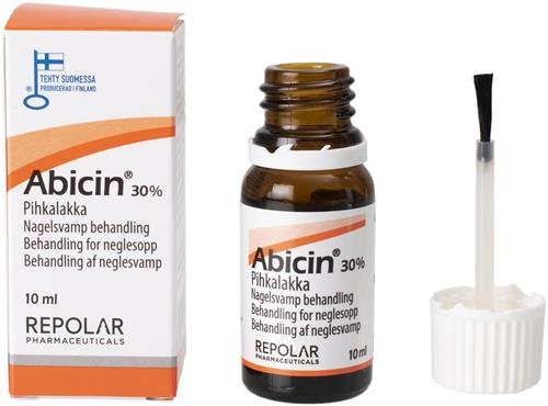 Léčba plísňové infekce nehtů: V případě potřeby povrch nehtu zdrsněte pilníkem, omyjte a osušte před aplikací laku. Naneste tenkou vrstvu laku na celý postižený povrch nehtu pomocí štětečku, který je součástí uzávěru a nechte zaschnout. Pokračujte v léčbě přípravkem Abicin® dvakrát týdně, dokud nebude poškozený nehet nahrazen novým, zdravým nehtem.