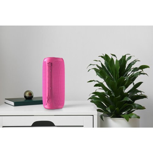 Hraje i pod vodou! Zkoušet to asi nebudete, ale voděodolnost reproduktoru BBS 5500 je tak super (IPX7), že odolá tekutině, i když je půl hodiny ponořený metr pod hladinu! To v praxi znamená, že ho nezastaví ani průtrž mračen. Hraje za sucha i za deště, a to až do vzdálenosti 15 metrů od zdroje muziky. Navíc je prostě trendy - potažený růžovou prémiovou tkaninou. A ví si vždycky rady - má slot na paměťovou kartu, AUX-In vstup, stavové LED indikátory, funguje i jako handsfree a váží jen málo přes půl kila. Je to prostě borec.