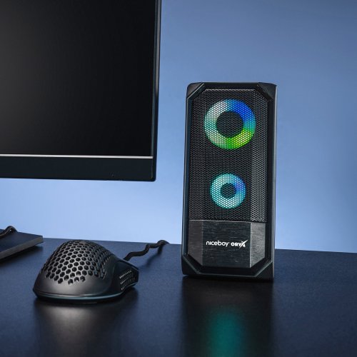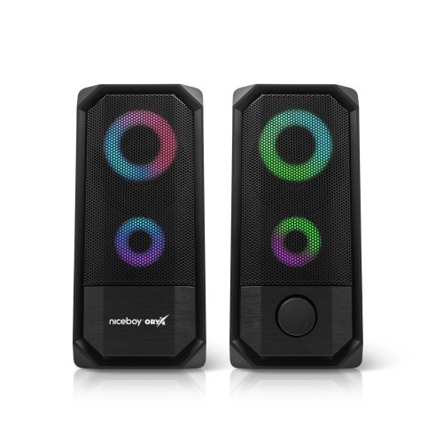 Domácí 2kanálová reprosoustava Niceboy Oryx Vox 2.0 představuje parádní volbu pro všechny audiofily, zvukové inženýry, kinematografické nadšence i vášnivé počítačové hráče, kteří si potrpí na vysoce realistickou reprodukci zvuku pro nezapomenutelné dojmy a zážitky z multimediální zábavy všeho druhu. Jednoduchý a zároveň elegantní design reproduktorů podtrhne dynamické RGB podsvícení se snadnou správou přes softwarový nástroj Oryx, které dokonale dokreslí atmosféru hudebních skladeb, filmů, seriálů, dokumentů i vašich oblíbených her.