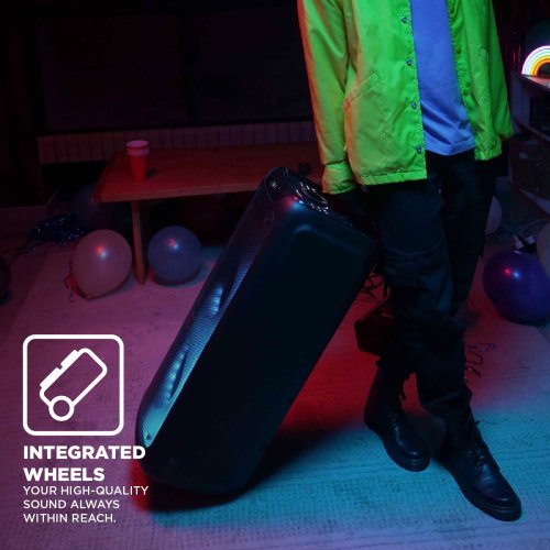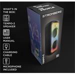 Stromberg TEMPO-2 přináší pořádnou dávku zvuku, světla a zábavy. Výkonný Bluetooth reproduktor o výkonu 120 W s RGB LED podsvícením rozzáří každou párty. V balení najdete také mikrofon, se kterým si užijete karaoke i moderování. Díky funkci Stromberg Connect můžete propojit dvě jednotky TEMPO-2 a vytvořit skutečný stereo zážitek. S výdrží až 6,2 hodiny na jedno nabití zvládnete v pohodě ozvučit i delší večírek.