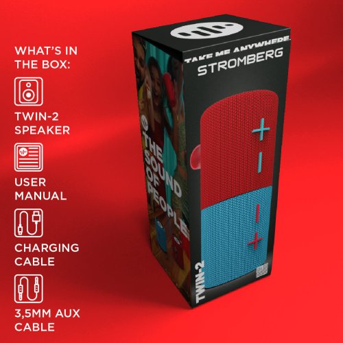 Reproduktory TWIN-2 můžete používat společně nebo každý samostatně. Díky magnetickému uchycení drží pevně na kovových površích, takže se hodí i do dílny, na zahradu nebo při sportu. Kompaktní tělo vážící pouhých 0,63 kg z něj dělá ideálního společníka na cesty.