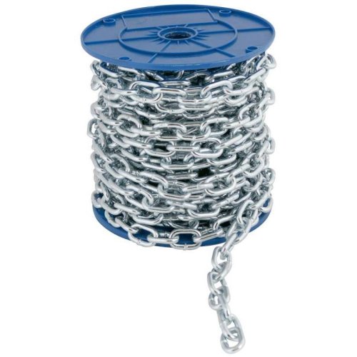 řetěz polodlouhý článek DIN 5685A s povrchovou úpravou povrch: galvanický zinkochromát bílý > 10μm materiál: ocel S235JR, pevnostní tř. 4.6, Re=235MPa řetěz navinutý na plastové cívce Tloušťka d [mm]:3 …