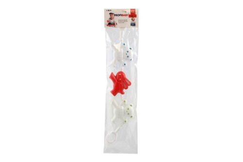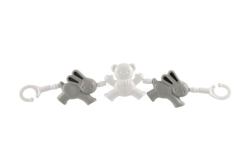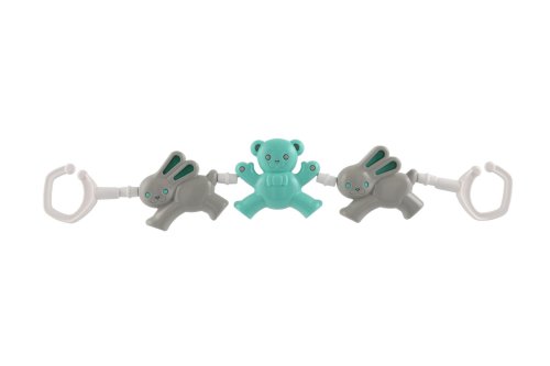 Plastový řetěz na kočárek se zvířátky zabaví děti při jízdě v kočárku. Různé tvary a materiály rozvíjí jemnou motoriku, veselé barvy rozvíjí dětské smysly.