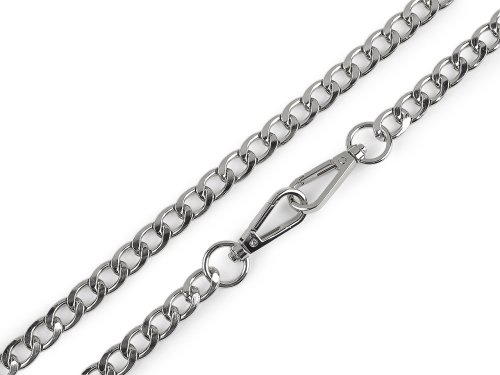 Kovový řetízek s velkými očky se skvěle hodí k psaníčkům, menším kabelkám nebo pouzdrům na mobilní telefony. Na obou jeho koncích najdete připevněné karabinky.