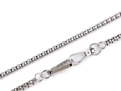 Designový kovový řetízek využijete na menší kabelky, psaníčka nebo pouzdra na mobilní telefony. Na obou jeho koncích najdete připevněné karabinky. Řetízek není určený na velkou zátěž.