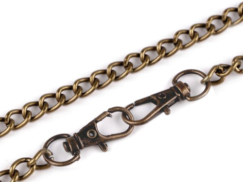 Řetízek má pevná oválná očka. Na obou koncích jsou připevněné karabinky. Řetízek je vhodný na kabelky, psaníčka a tašky. [Řetízek není určený na velkou zátěž.]