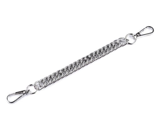Krátký kovový řetízek vynikne jako stylové ucho na kabelce, psaníčku i třeba městském batohu. Na obou jeho koncích najdete připevněné karabinky. Řetízek není určený na velkou zátěž.