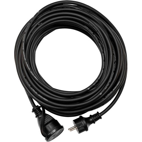 Délka kabelu 20 m Typ kabelu H07RN-F 3G1.5 mm² Jmenovité napětí 250 V AC Jmenovitý proud 16 A Krytí IP44 – odolné proti stříkající vodě a prachu Bezpečnostní prvek zelené ochranné clony proti náhodnému dotyku Materiál robustní pogumovaný plast Barva černá Přímý vývod kabelu Vhodný pro vnitřní i venkovní použití Určený pro prodlužování napájecích kabelů, připojení nářadí a zahradní techniky