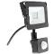LED reflektor Celohliníkové tělo - slim provedení Příkon: 10W Napájení: 230V AC Ra: >80 Světelný tok: 800 lm CCT: 4000K - studená bílá Vyzařovací úhel: 120° Dosah senzoru: max 10m Rozsah teplot: -25°C - 45°C Rozměr: 145 x 115 x 47mm Stupeň krytí IP65 10W = 80 W (u halogen žárovky) PIR senzor