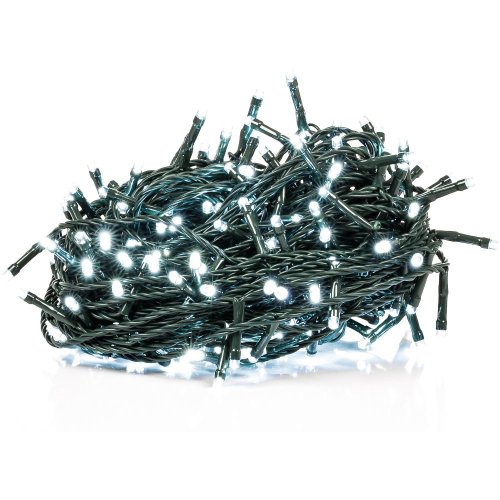 Vánoční řetěz 150LED Časovač: 6/18 h Celková délka kabelu: 20 m Délka osvětleného kabelu: 15 m Délka přívodní šňůry: 5 m Počet LED: 150 Barva světla: studená bílá Pro vnitřní i venkovní použití Krytí: IP 44