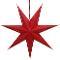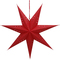 Hvězda vánoční sedmicípá Materiál: Směs papíru a bavlny Třpytivý posyp zlaté barvy Barva červená 10LED Barva světla: teplá bílá Napájení: 3xAA Časovač: 6/18 h Průměr hvězdy: 60cm Baterie nejsou součástí balení