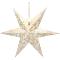 Hvězda vánoční šesticípá Materiál: Směs papíru a bavlny Barva zlatá 10LED Barva světla: teplá bílá Napájení: 3xAA Časovač: 6/18 h Průměr hvězdy: 60cm Baterie nejsou součástí balení