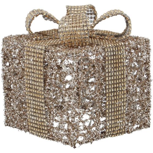 Drátěná dekorace ve tvaru dárku s třpytkami 10LED