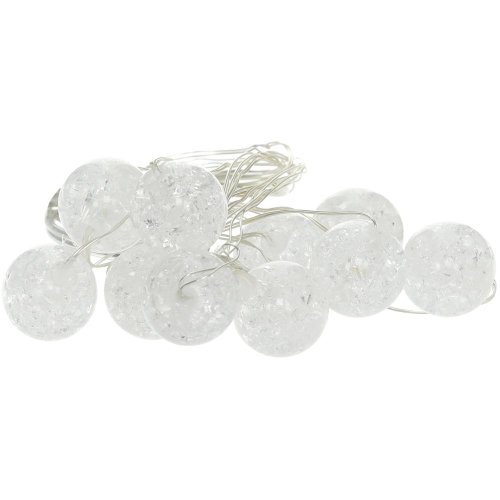 Girlanda Maxi kuličky 10 LED Časovač: 6/18 h Celková délka kabelu: 2,35 m Délka osvětleného kabelu: 2 m Dělka přívodní šňůry: 0,35 m Počet LED: 10 Barva světla: multicolor Pro vnitřní použití Krytí: IP20 Napájení: 2x AA Baterie nejsou součástí balení
