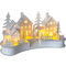Vánoční vesnička s LED Materiál bílé dřevo Barva LED teplá bílá Velikost 30 x 15 x 16,5 cm Počet LED 6 Napájení baterie 2 x AA (nejsou součástí balení) Krytí IP20