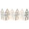 Vánoční skládací kovové domečky s LED Barva LED: teplá bílá Velikost: 44 x 14 cm Počet LED: 12 Napájení: baterie 2 x AA (nejsou součástí balení) Barevné provedení: bílá / černá Krytí: IP20