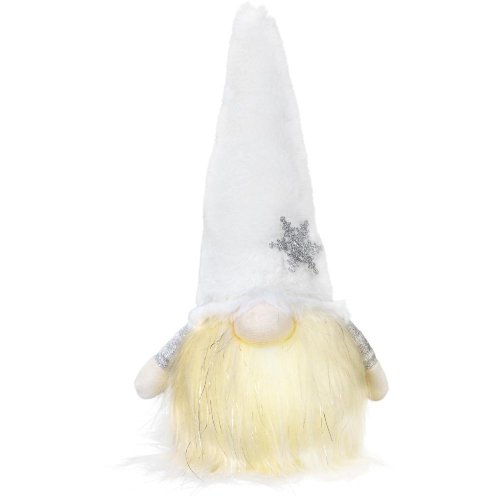 Světelná dekorace BÍLÝ SKŘÍTEK Materiál: plyš Velikost: 15 x 12 x 27 cm Počet LED: 1 Barva světla: teplá bílá Napájení: 3x AA (nejsou součástí balení) IP20 pouze pro vnitřní použití