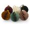 Sada papírových ozdob KOULIČKY Kouličky skládané ve tvaru včelí plástve s třpytkami na okrajích Materiál: papír Velikost kuličky: 7 cm Barva: tmavě zelená, světle zelená, růžové zlato, kaštanová, hořčicová a krémová Použití pouze ve vnitřních prostorách