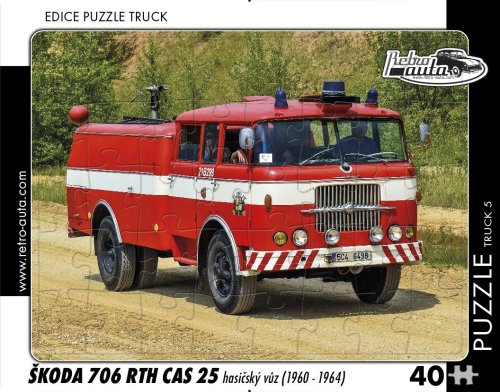 RETRO-AUTA Puzzle TRUCK č.5 Škoda 706 RTH CAS 25 hasičský vůz (1960-1964) 40 dílků
